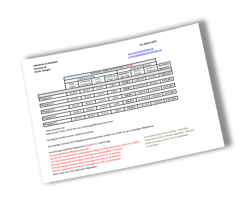 Laden Sie zuerst den Fragebogen herunter und füllen diesen aus. Anschließend speichern Sie das Dokument ab und senden es uns per Mail an info@altenheim-ellingen.de